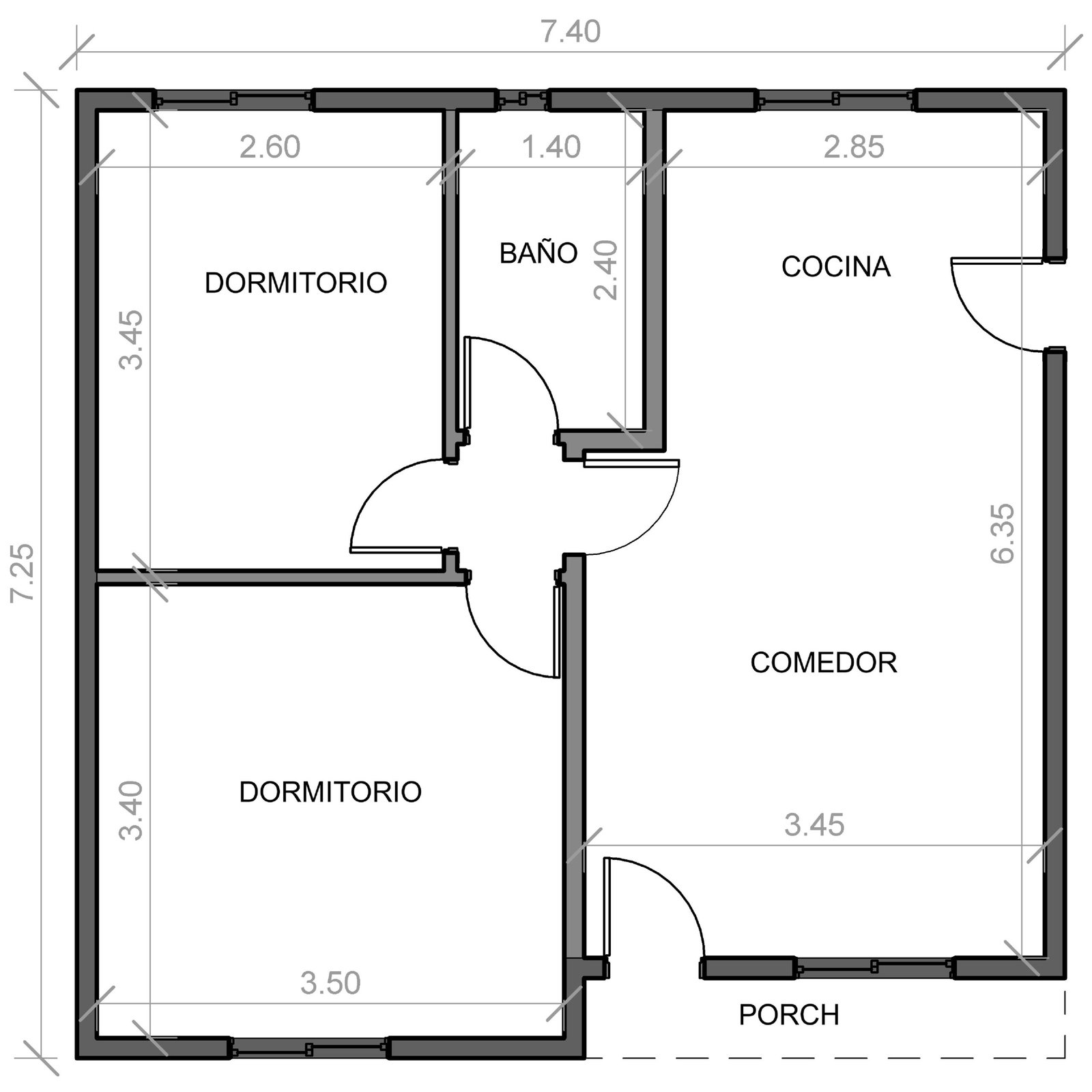 En el interior se colocan 4 puerta placa de cedrillo con marco de madera de 0.74m x 2.00m.