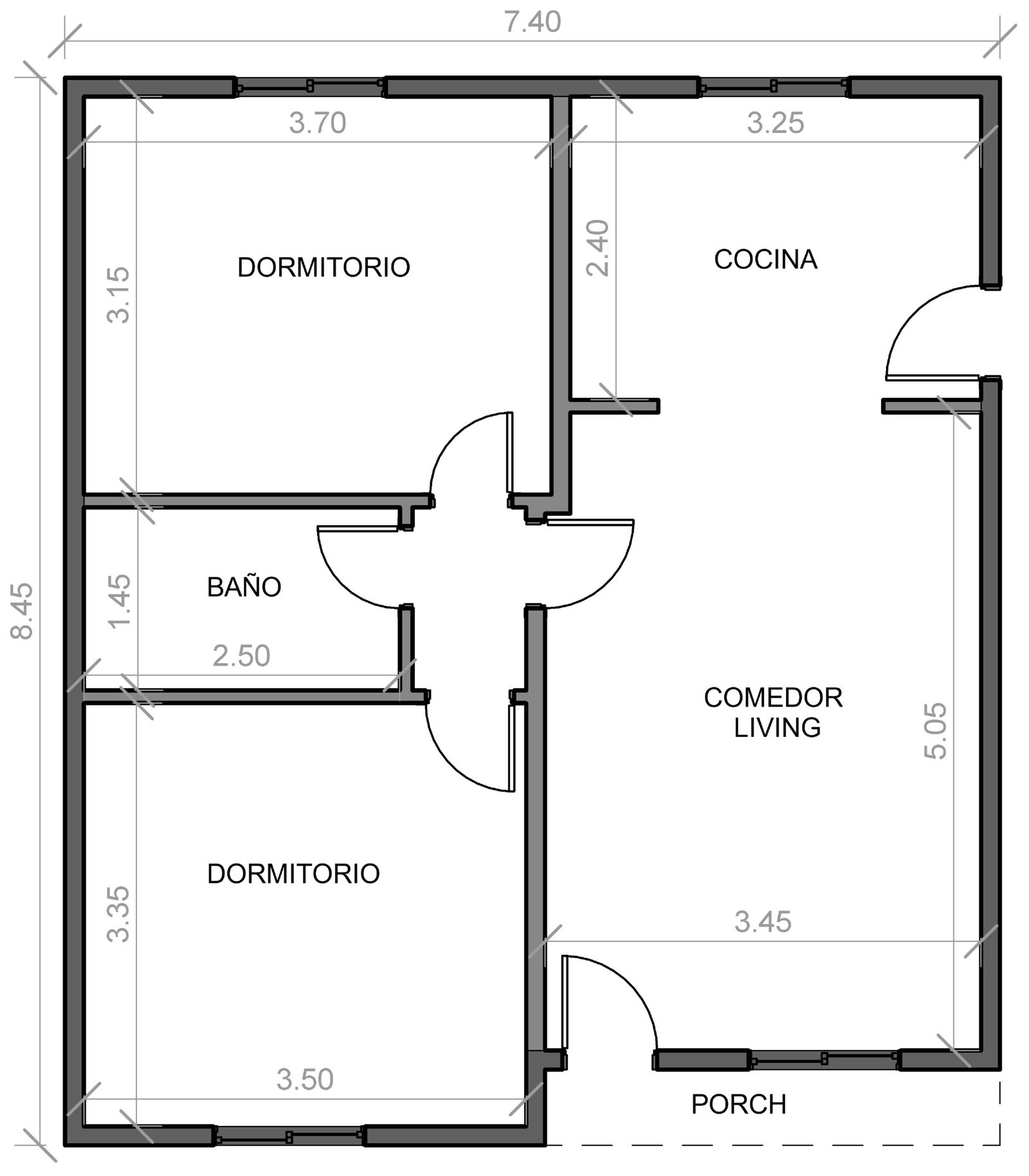 En el interior se colocan 4 puerta placa de cedrillo con marco de madera de 0.74m x 2.00m.